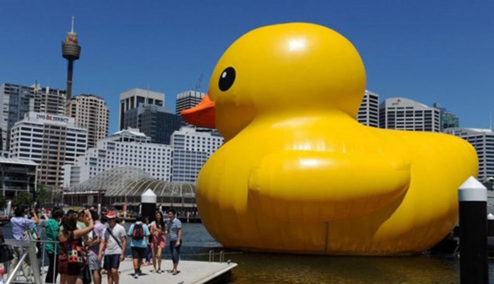 “大黄鸭”在澳大利亚悉尼展览。(图片来源:新华社)