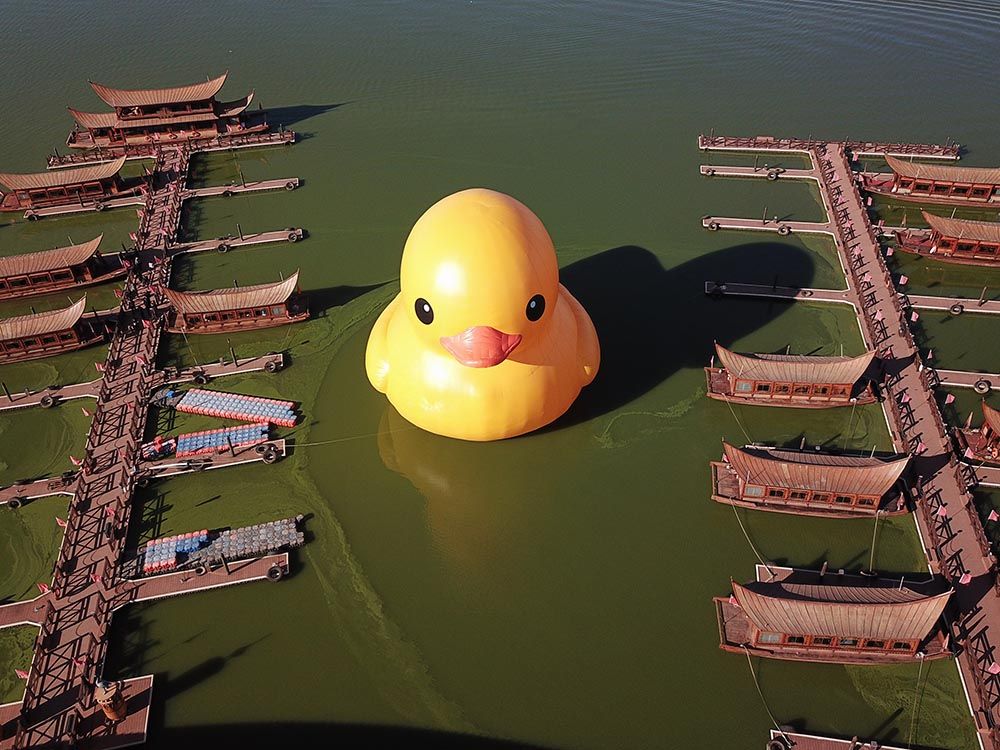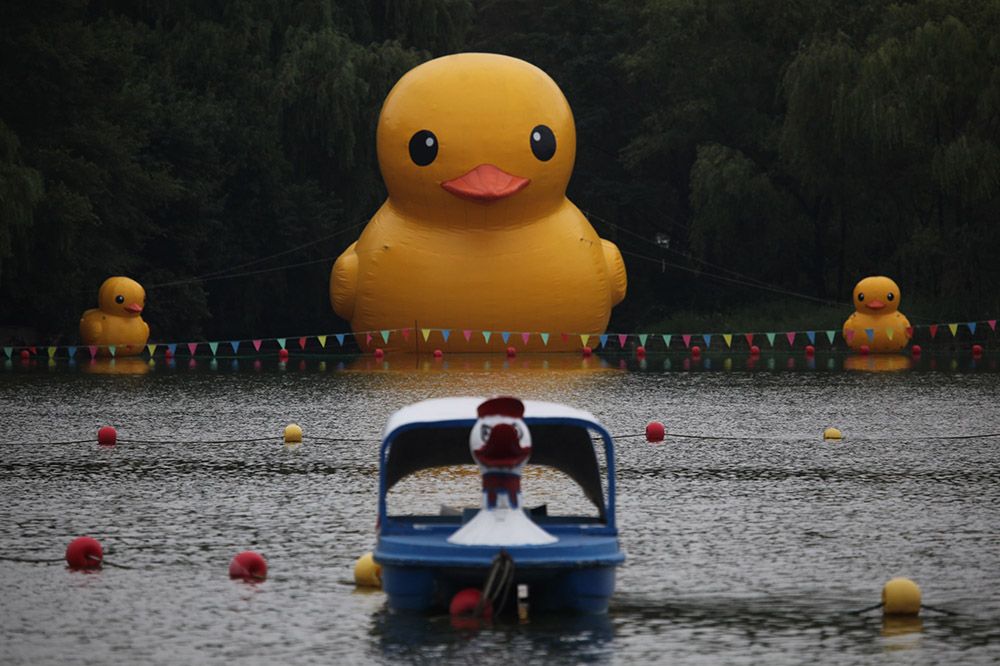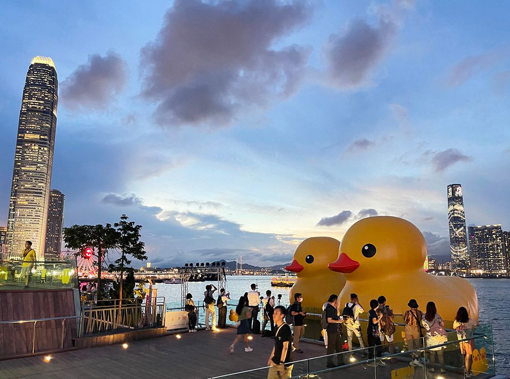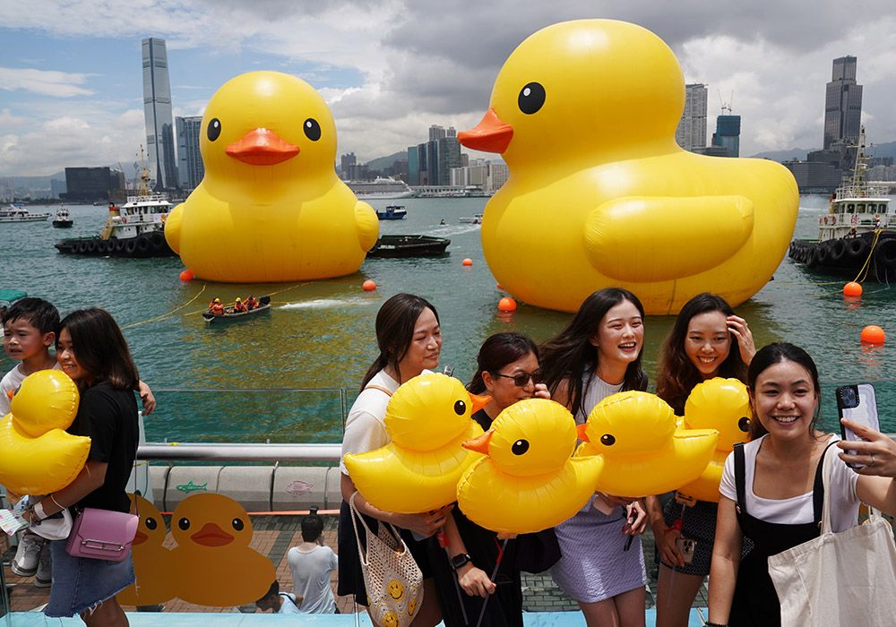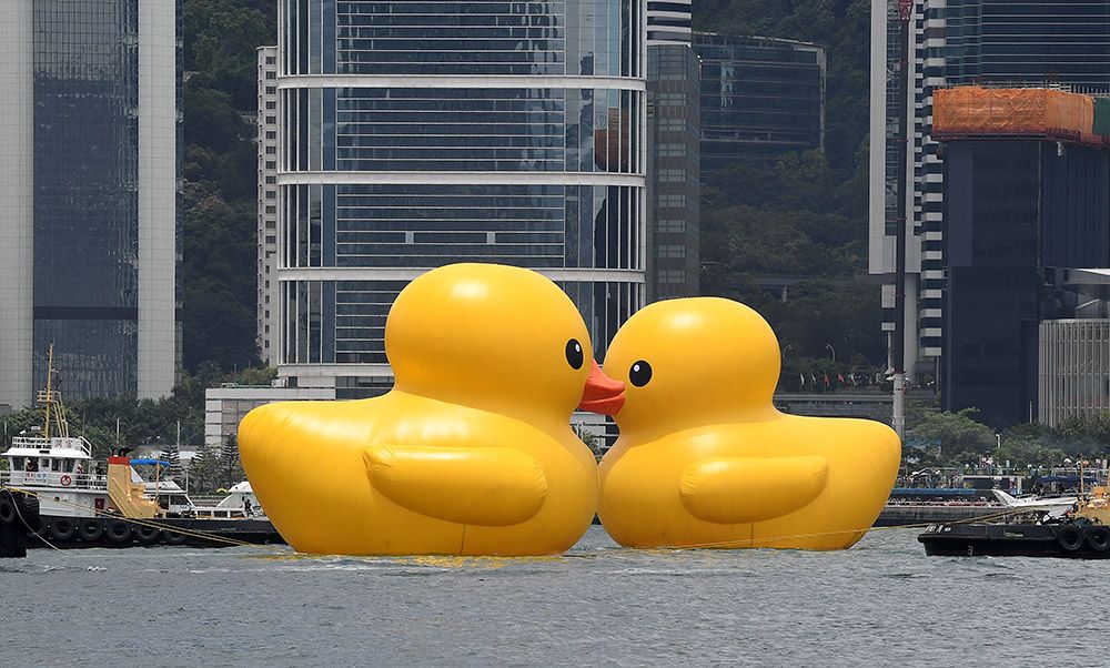 2001年,荷兰艺术家弗洛伦泰因·霍夫曼萌生出大黄鸭的想法。2007年,这只高达26米的黄色橡皮鸭巨型漂浮雕塑首次出现,此后开始在世界各地巡回展出。然后,突然之间,它又消失了。近日,这只“大黄鸭”亮相中国香港维多利亚港。这是阔别10年后,“大黄鸭”再度到港。