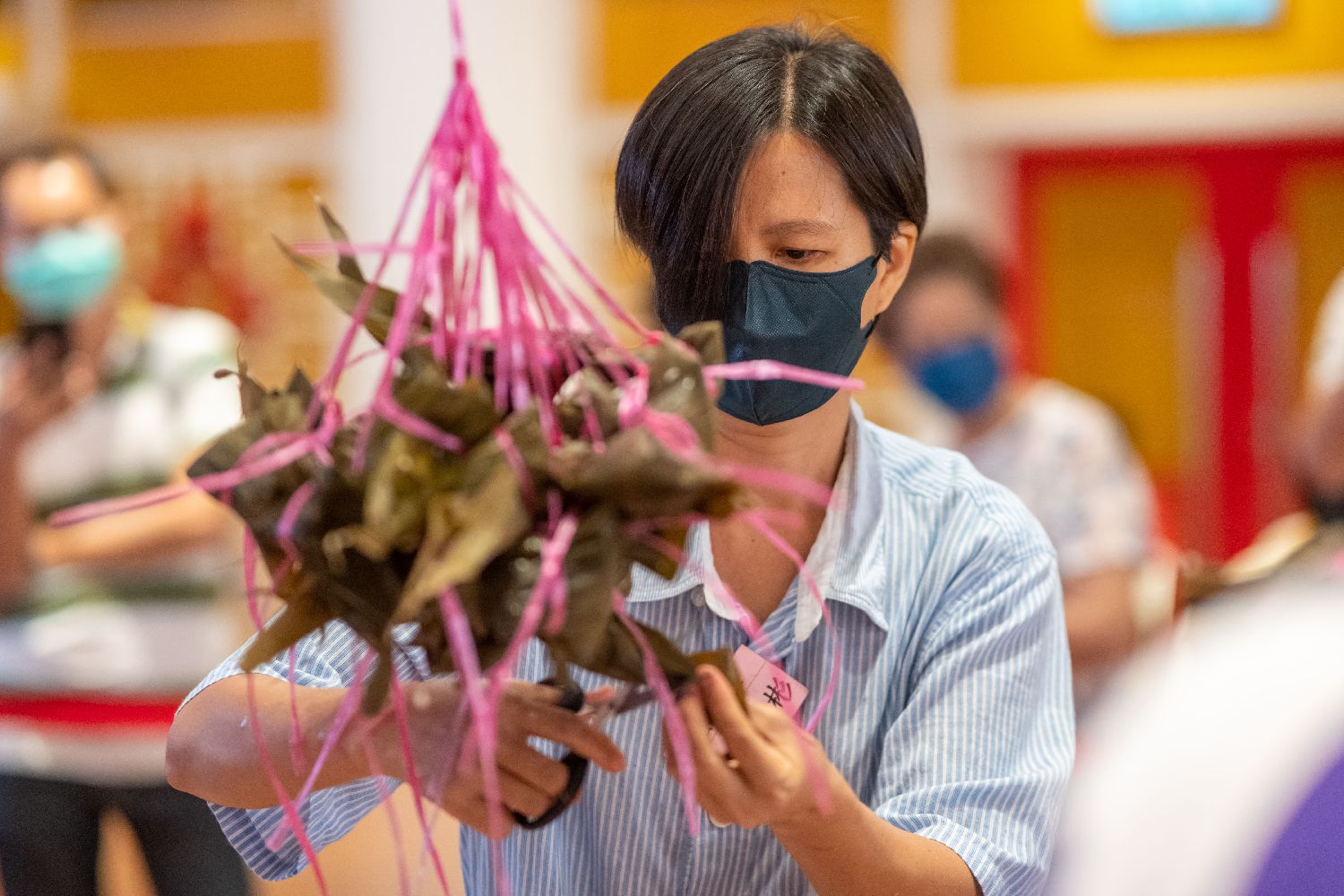 6月18日,一名女子在马来西亚吉隆坡参加裹粽比赛。(图片来源:新华社)