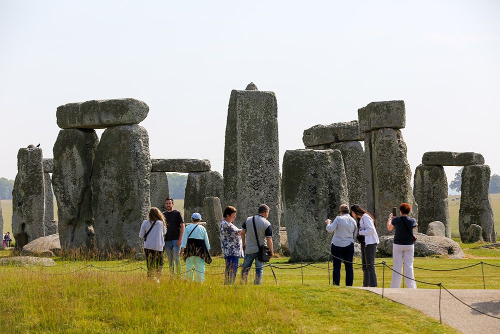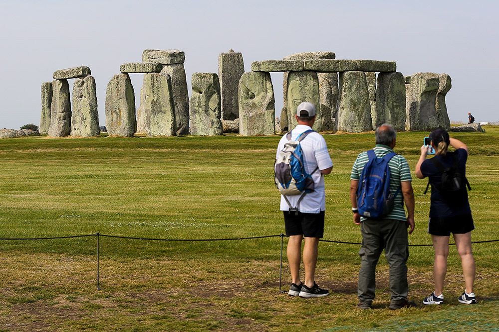 人们在英国威尔特郡的巨石阵参观。(图片来源:新华社)