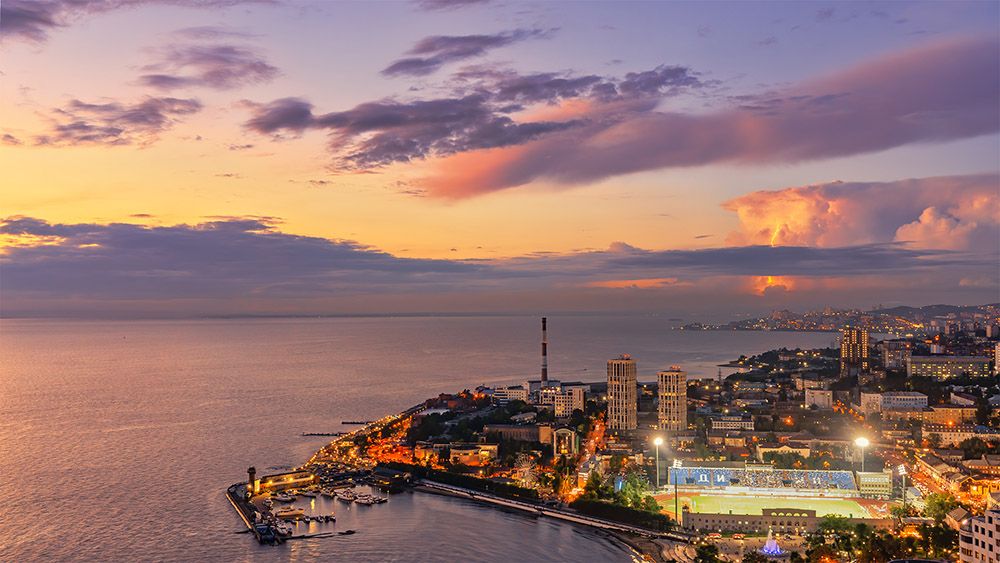在俄罗斯符拉迪沃斯托克拍摄的阿穆尔湾夏日傍晚景象。(图片来源:新华社)