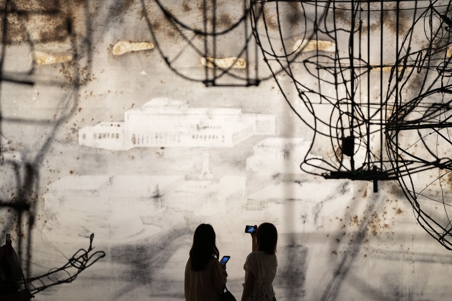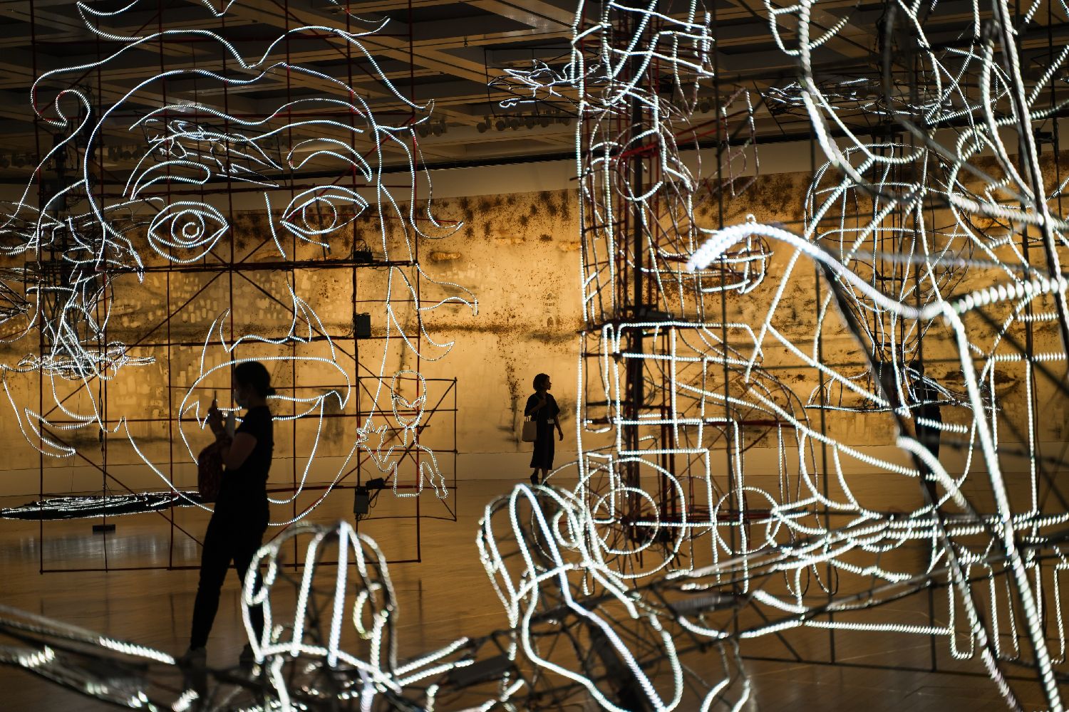参观者观看蔡国强个人展览。(图片来源:新华社)