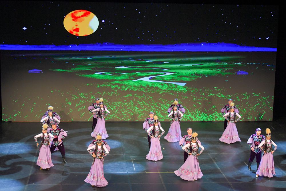 新疆艺术剧院木卡姆艺术团演员表演舞蹈《金刀郎》。(图片来源:新华社)