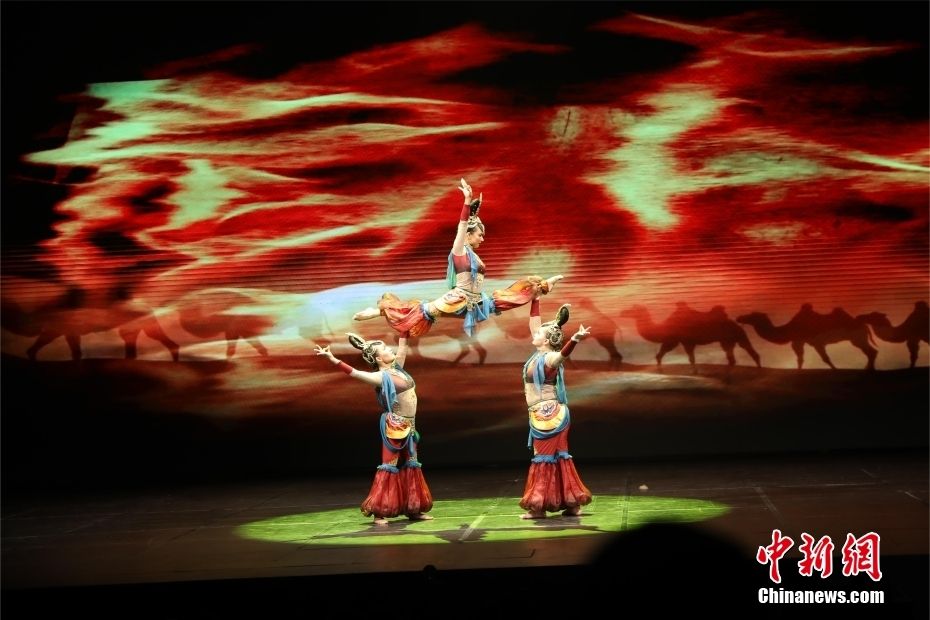 新疆艺术剧院木卡姆艺术团演员表演舞蹈《花腰带》。(图片来源:新华社)