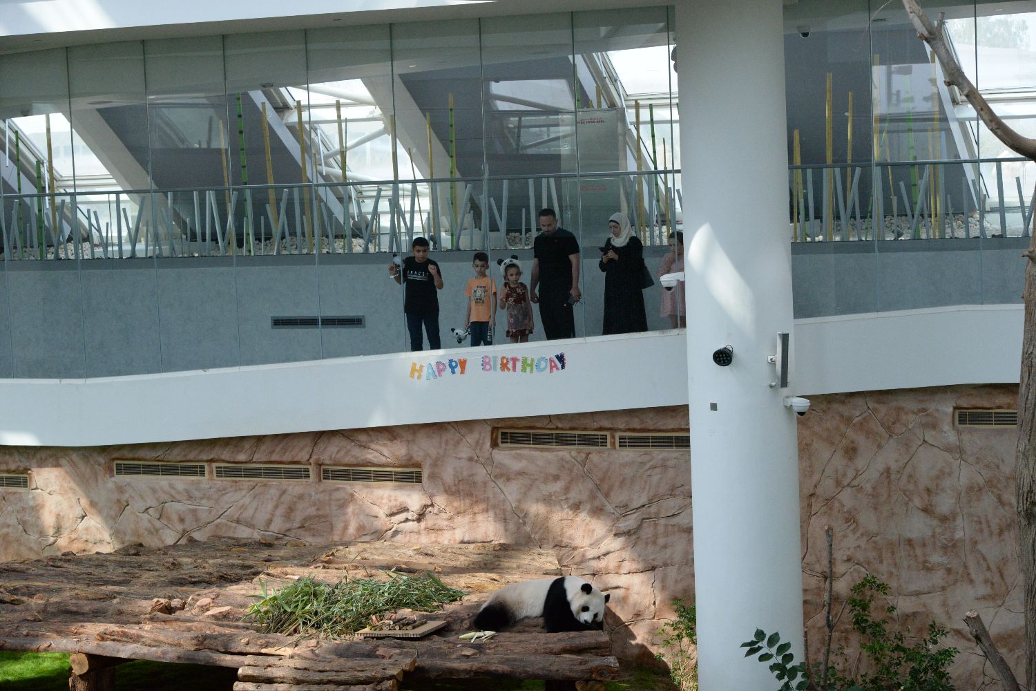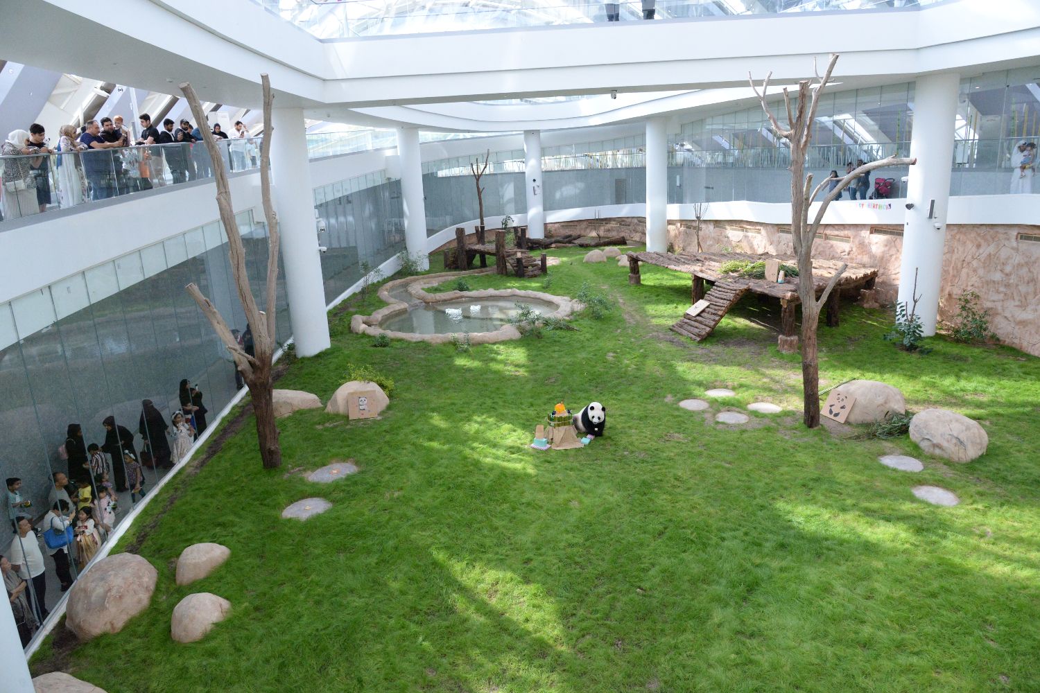 7月26日,人们在卡塔尔多哈的豪尔熊猫馆参观。(图片来源:新华社)