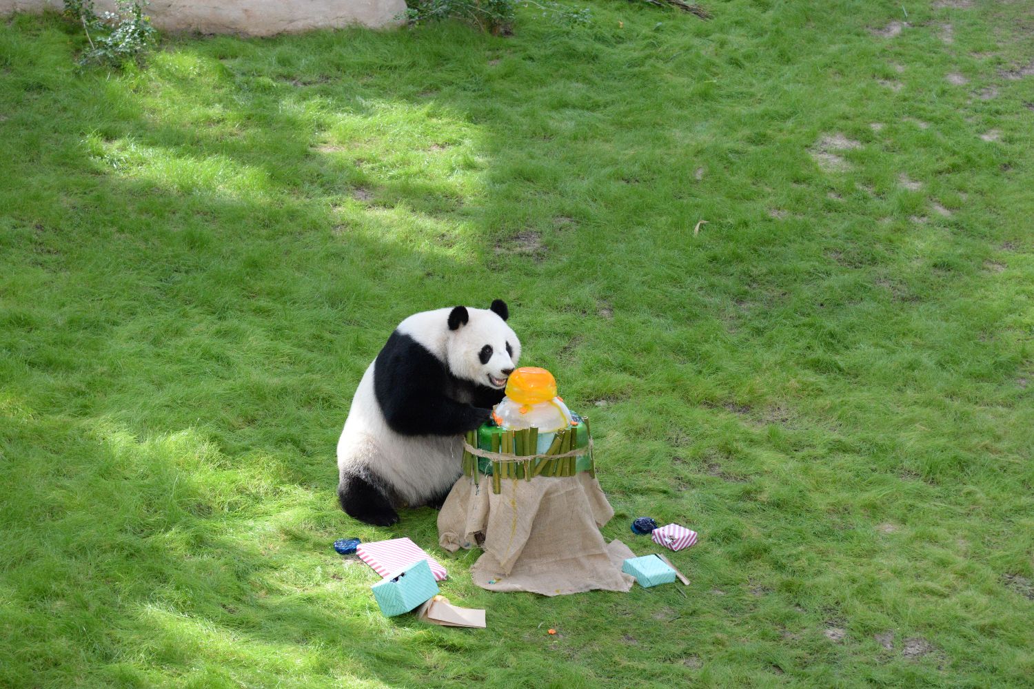 7月26日,在卡塔尔多哈的豪尔熊猫馆,大熊猫“四海”迎来四岁生日。(图片来源:新华社)