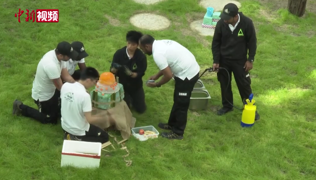 熊猫馆的工作人员给“四海”准备了生日蛋糕,并摆上了它平常最爱的甜食——苹果。(图片来源:中新视频截图)