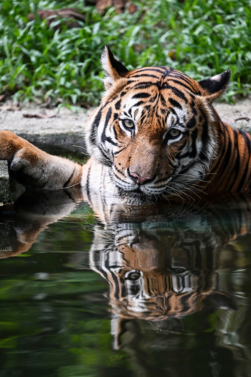 7月24日,一只马来亚虎在马来西亚吉隆坡附近的国家动物园内休息。