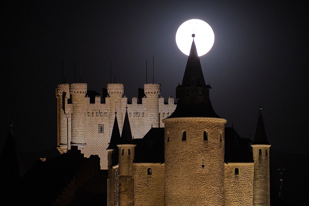 “超级月亮”和塞哥维亚城堡。(图片来源:新华社)
