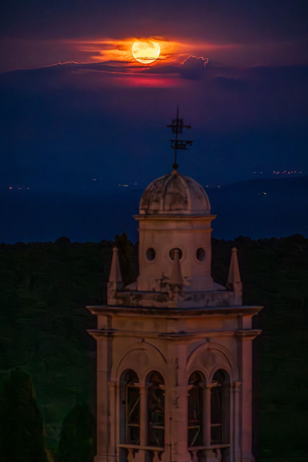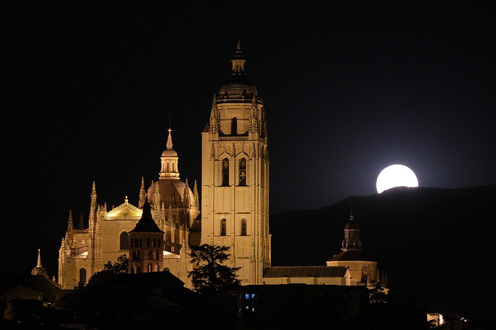“超级月亮”和塞哥维亚主教座堂。(图片来源:新华社)
