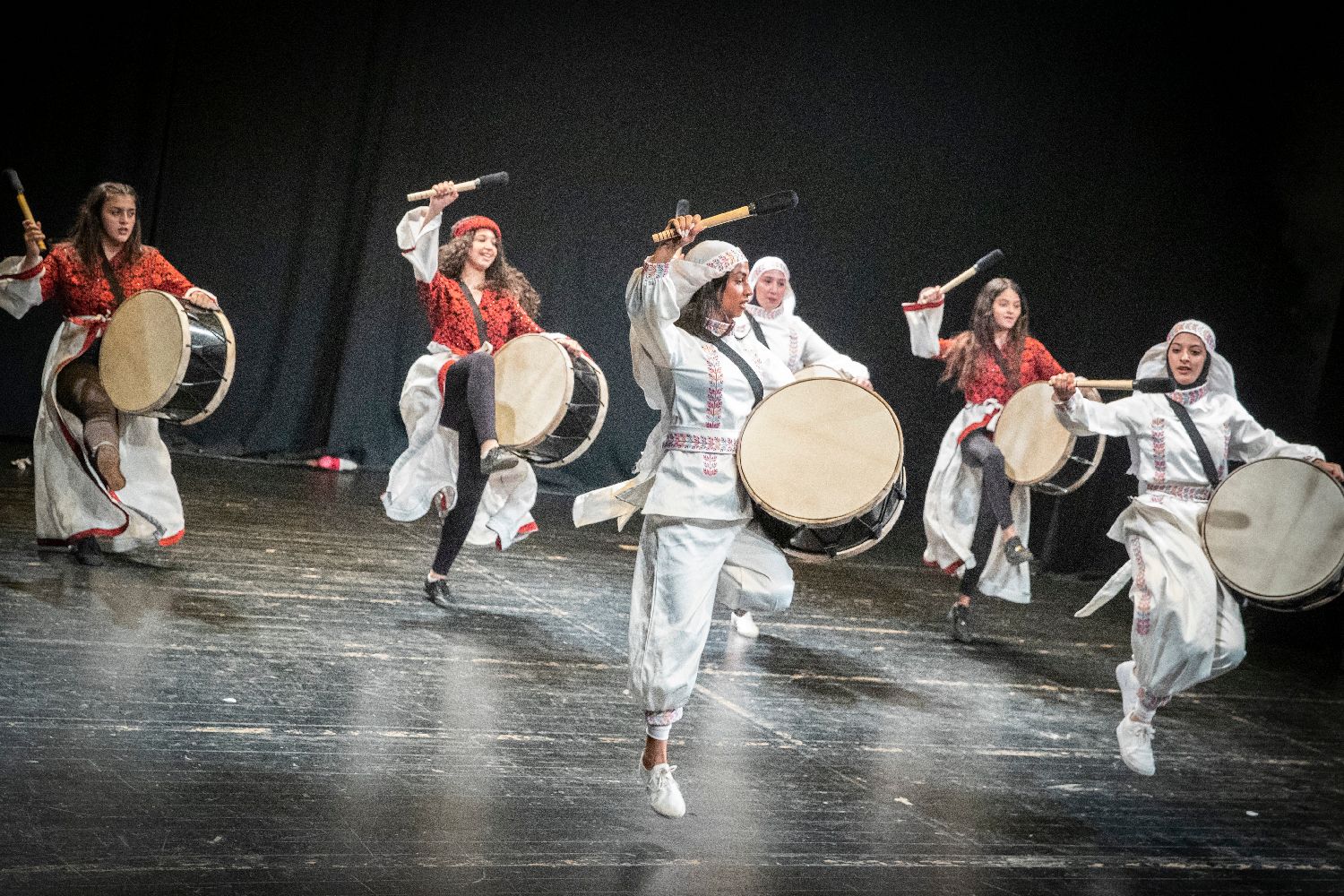 图为演员在东耶路撒冷表演传统舞蹈“狄布开舞”。(图片来源:新华社)
