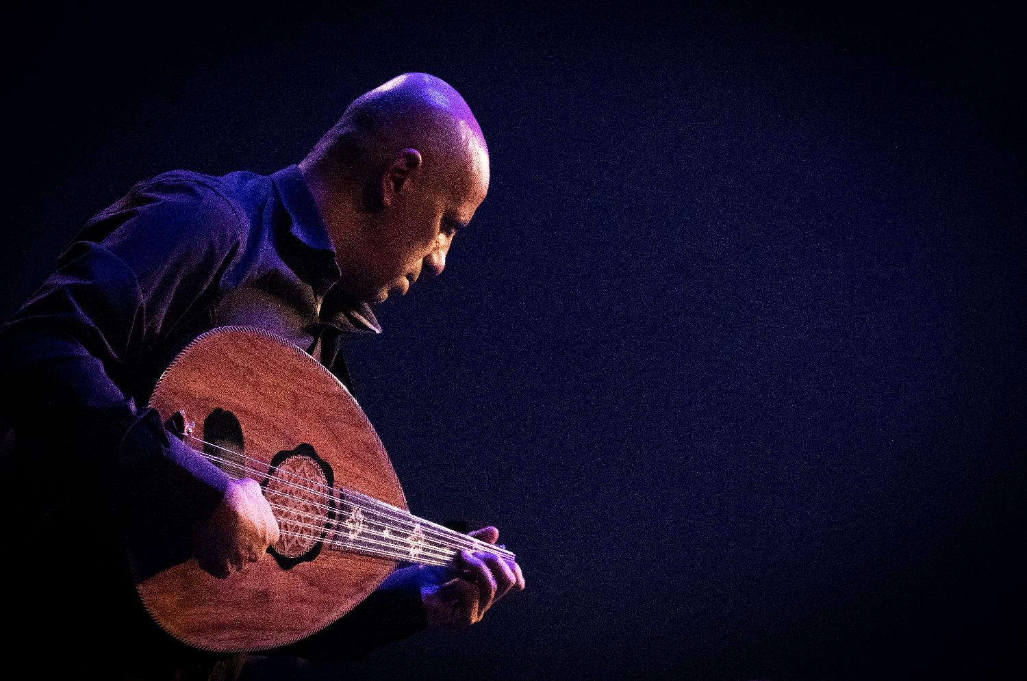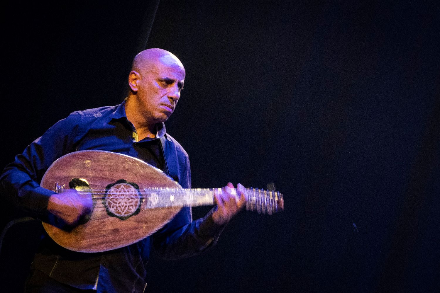 图为演员在东耶路撒冷演奏中东传统乐器乌德琴。(图片来源:新华社)