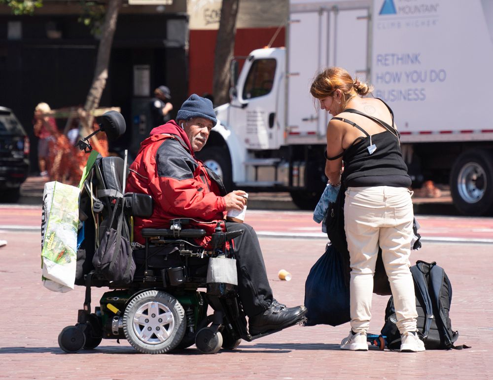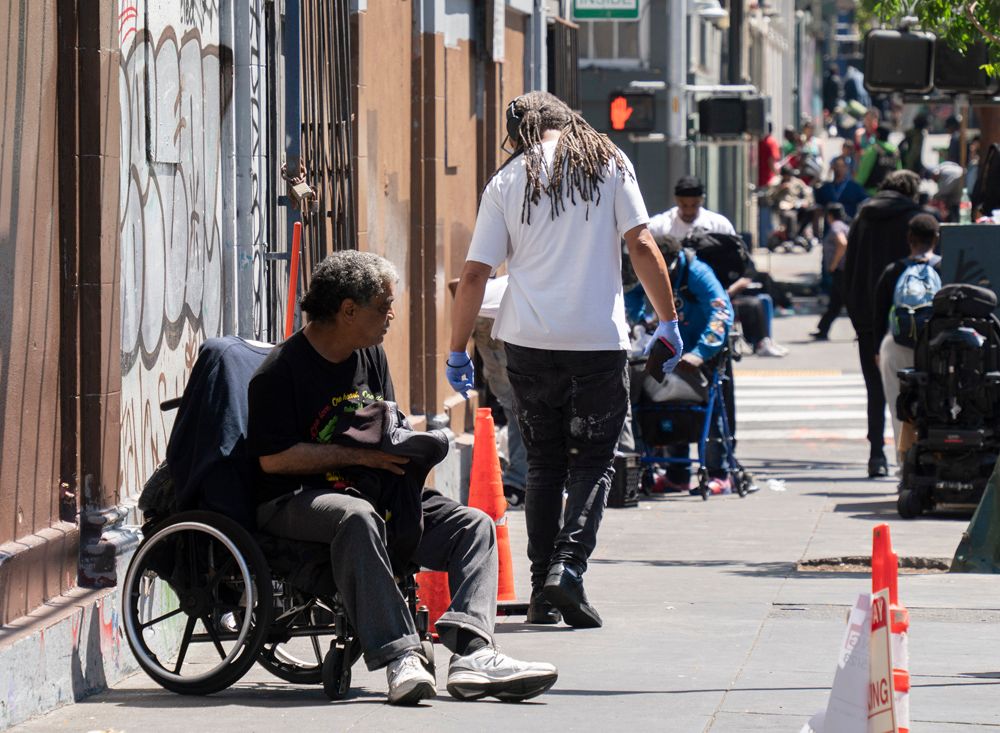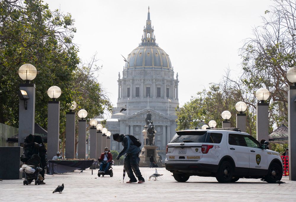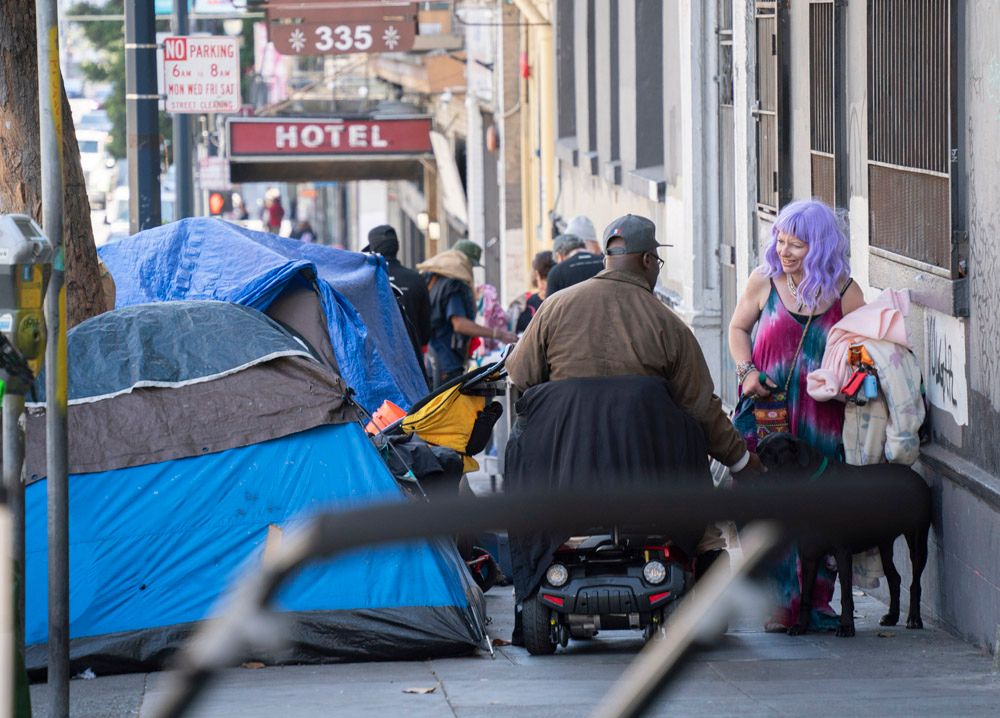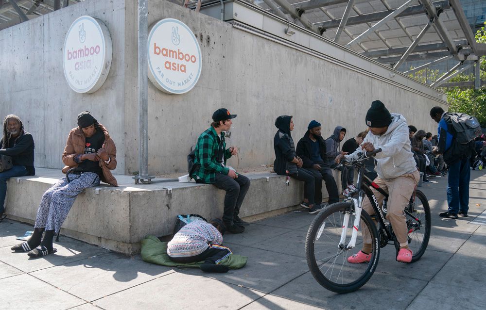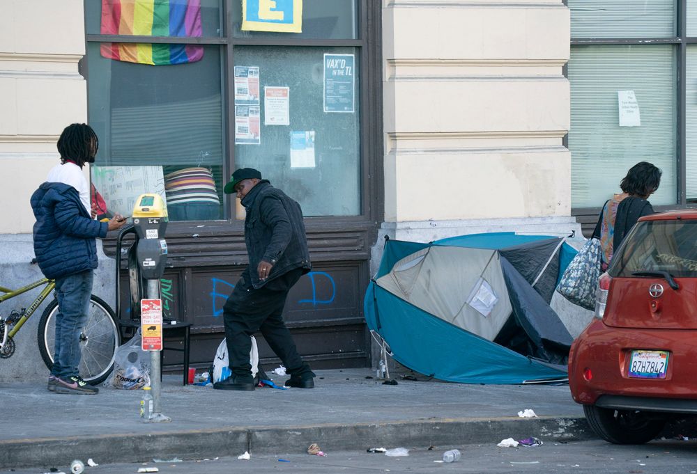 洛杉矶和旧金山的无家可归者规模尤其庞大,两城的市长都曾因为这一问题宣布当地进入紧急状态。图为8月19日,无家可归者从美国旧金山市政厅附近经过。(图片来源:中新社)