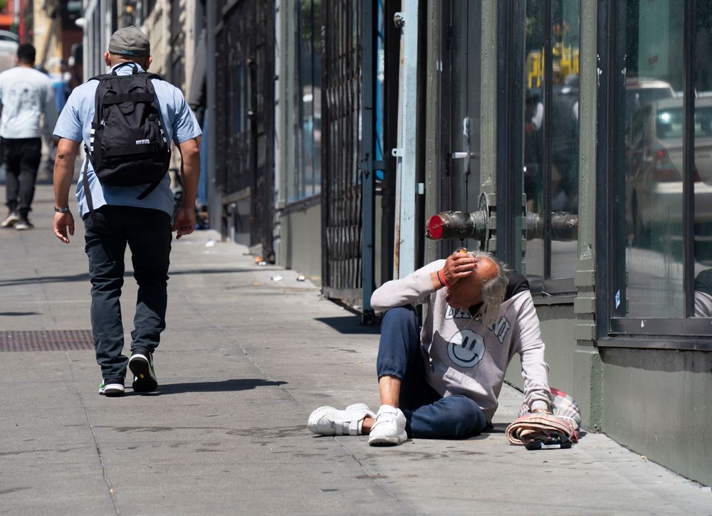 《华尔街日报》近期对超过300家机构的数据进行归纳后发现,截至目前,美国无家可归者人数较去年已增长11%,为美国官方自2007年开始跟踪相关数据以来的最大增幅。图为当地时间8月18日,无家可归者从美国旧金山田德隆区街头经过。(图片来源:中新社)