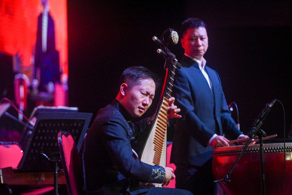 担纲本次专场演出的中国音乐家协会“金钟之星”民乐团,由荣获中国音乐最高奖“金钟奖”金奖的多位青年演奏家等组成。据主办方介绍,“一带一路”倡议提出十年来,中国音乐家协会多次组派民族音乐团组赴沿线国家举办“丝路花语”中国民族音乐巡演活动。(图片来源:中新社)