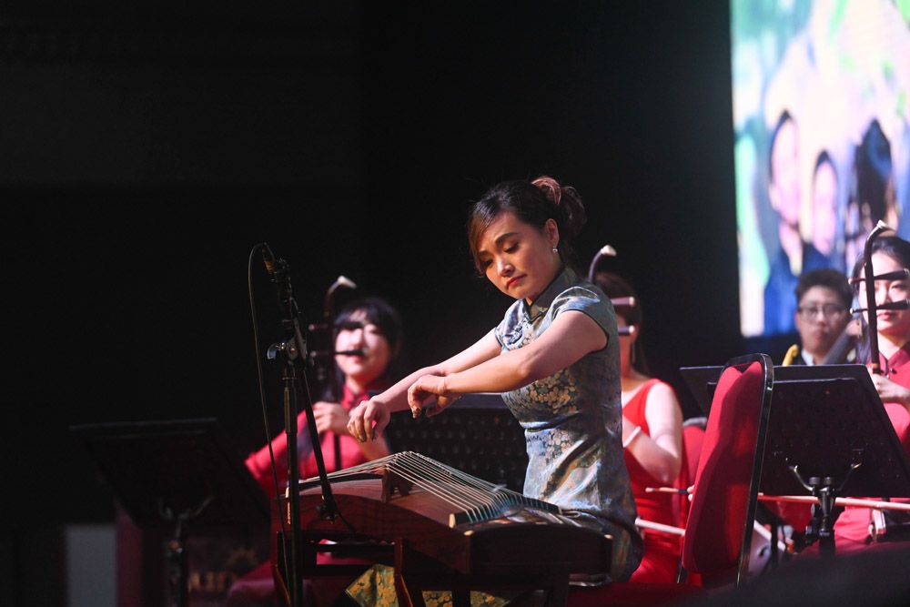 演奏者表演古筝独奏《秦桑曲》。(图片来源:新华社)