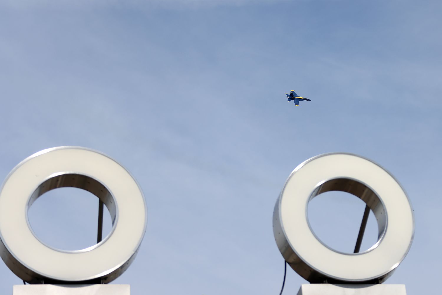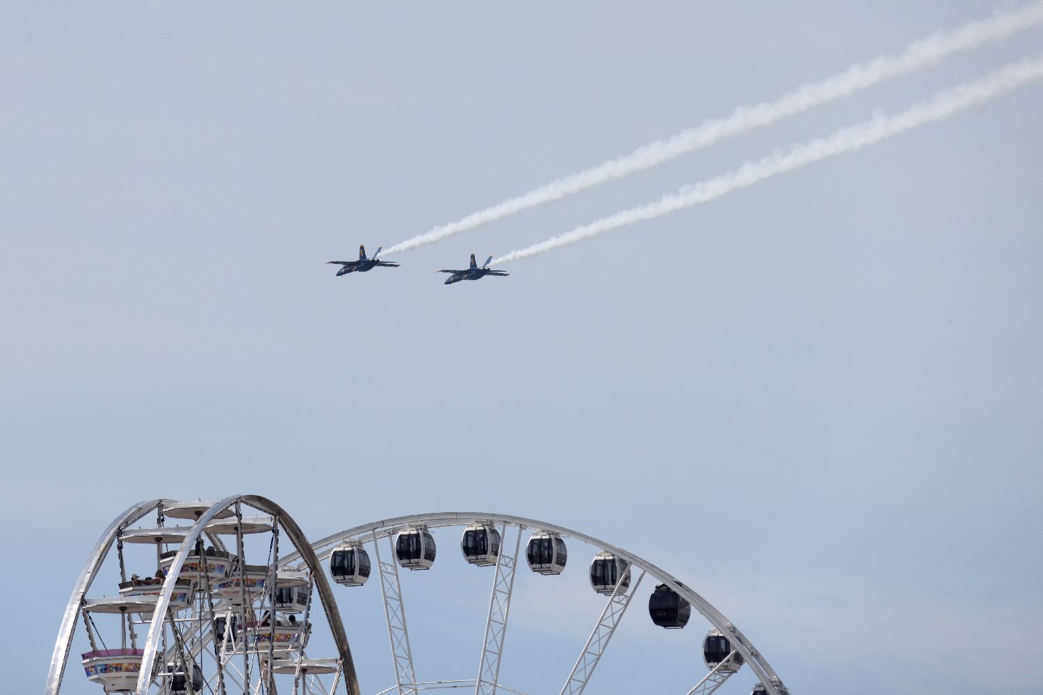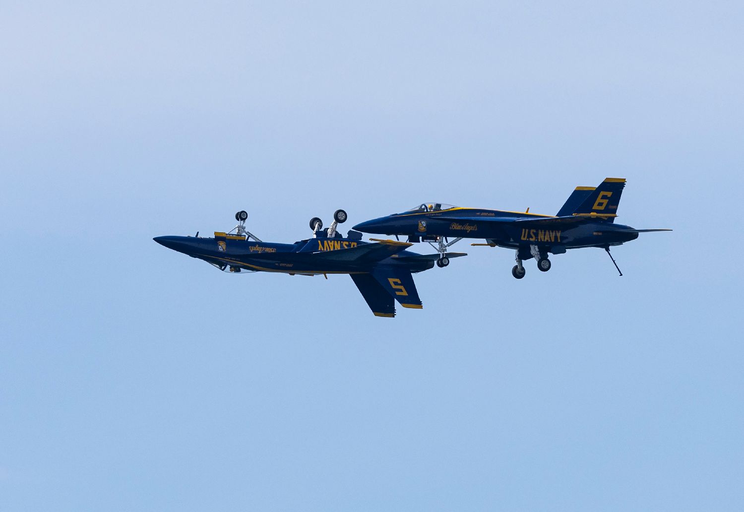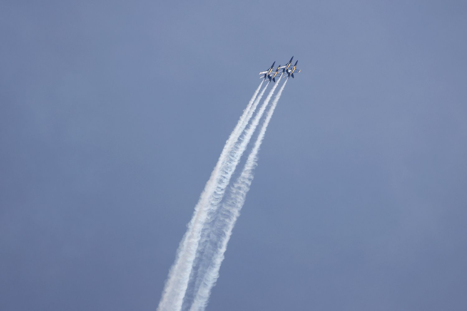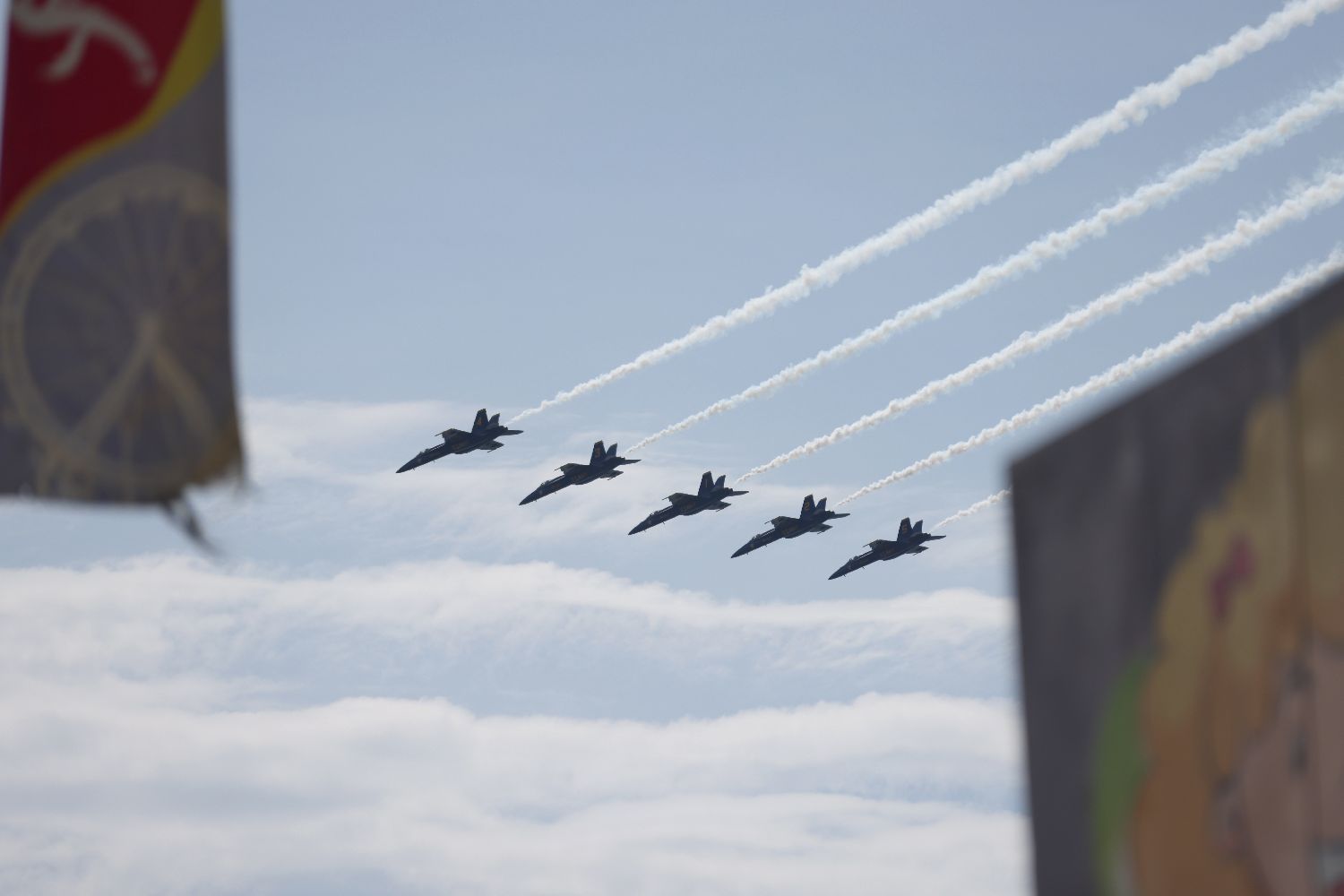 9月2日,美国海军“蓝天使”特技飞行表演队的战机进行飞行表演。(图片来源:中新社)
