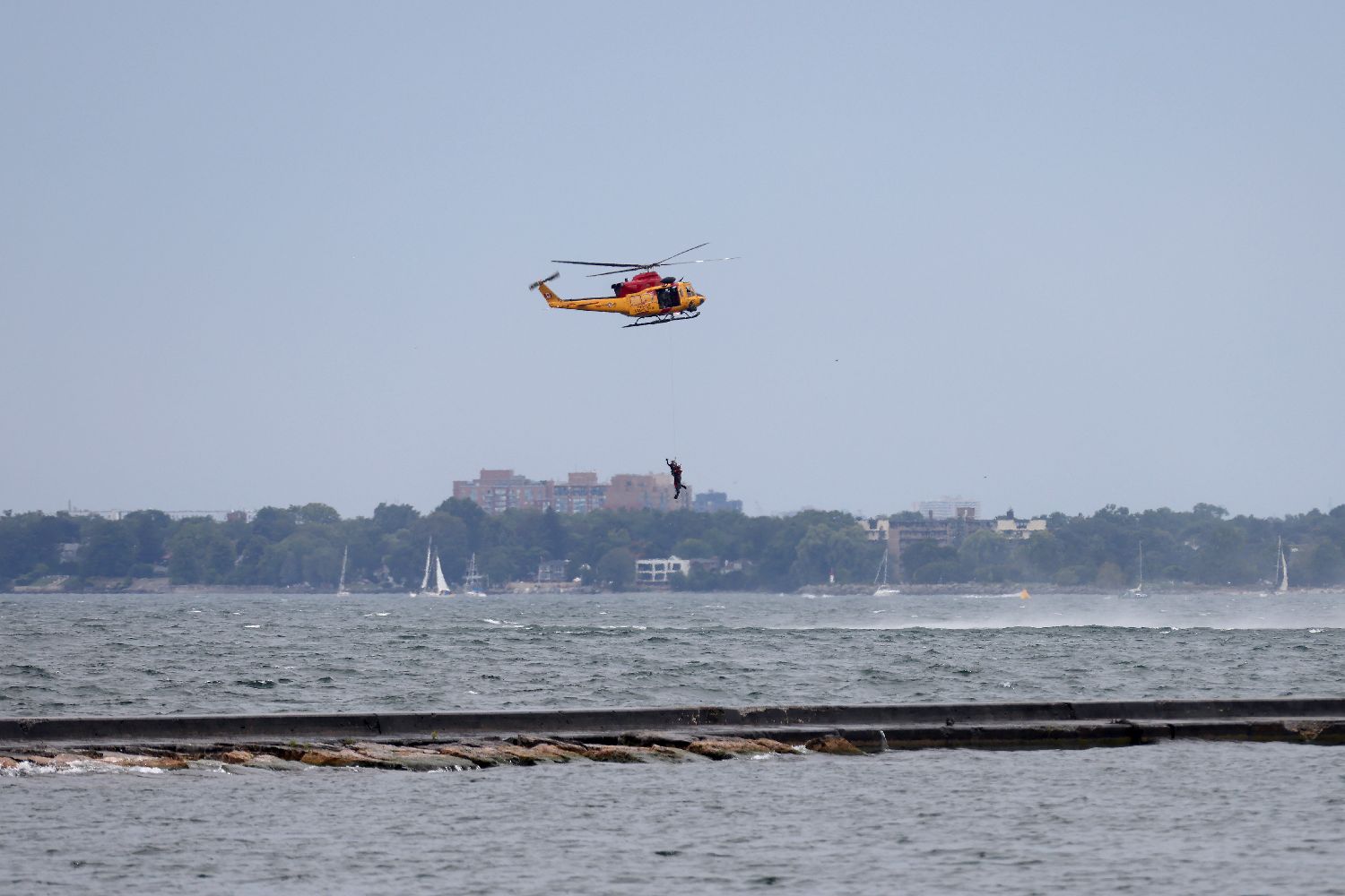 9月2日,加拿大皇家空军一架CH-146“狮鹫”直升机进行水上搜救表演。(图片来源:中新社)
