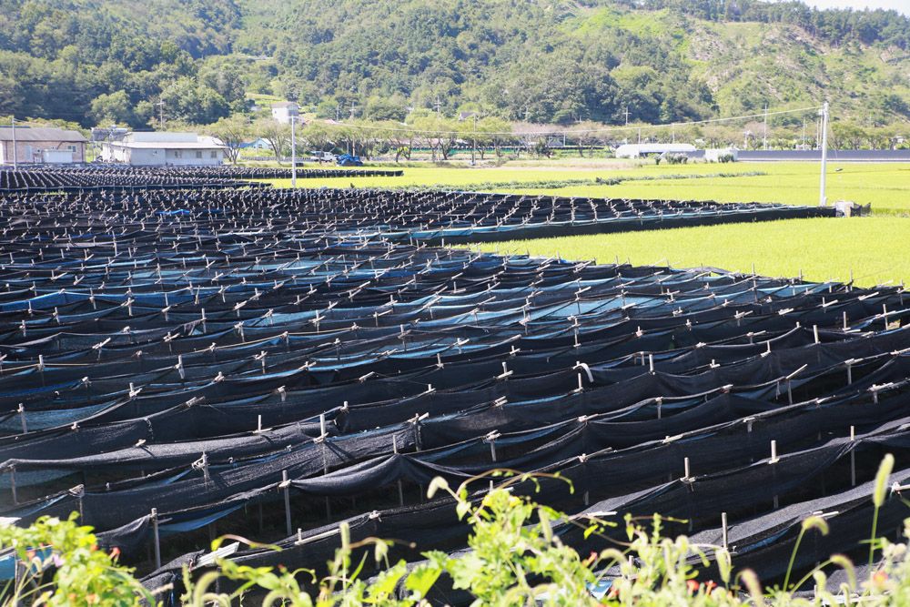 9月6日在韩国忠清南道锦山拍摄的高丽参栽培棚。