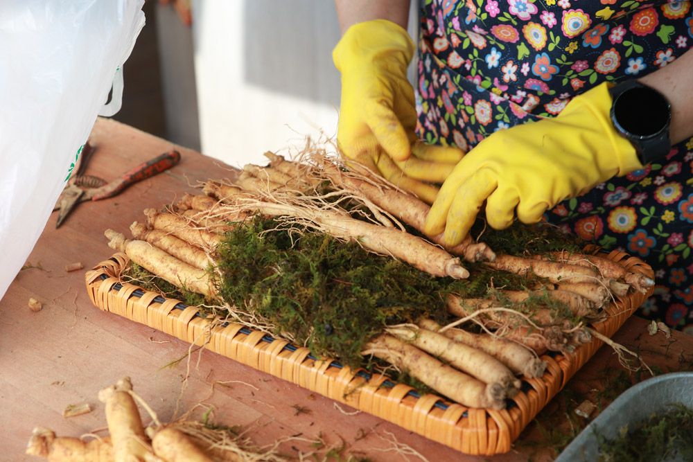9月5日,在韩国忠清南道锦山,当地商人包装高丽参。