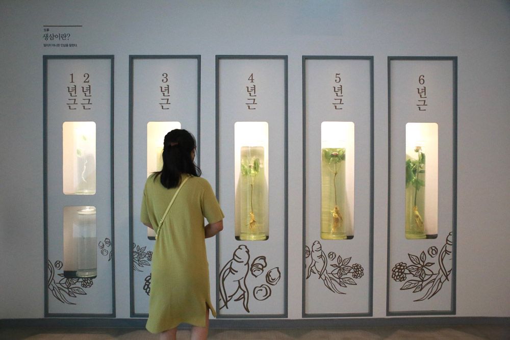 9月5日,一名女子在韩国忠清南道锦山参观人参馆。