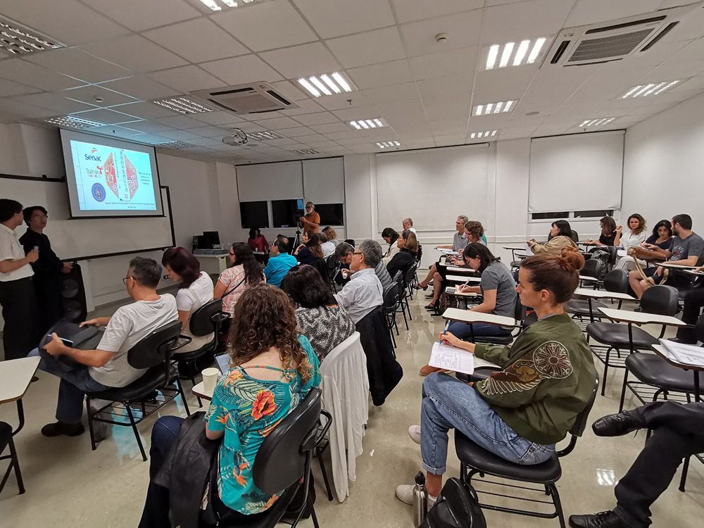 中医使者文新(左二)在巴西为当地医生和中医爱好者授课。