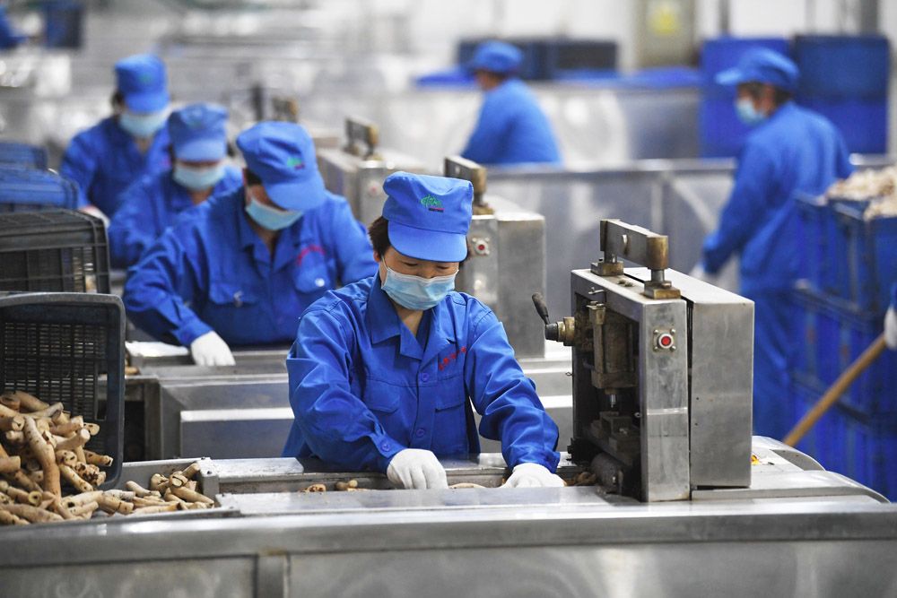 工作人员在安徽协和成药业饮片有限公司的生产车间切制“出海”中药饮片。