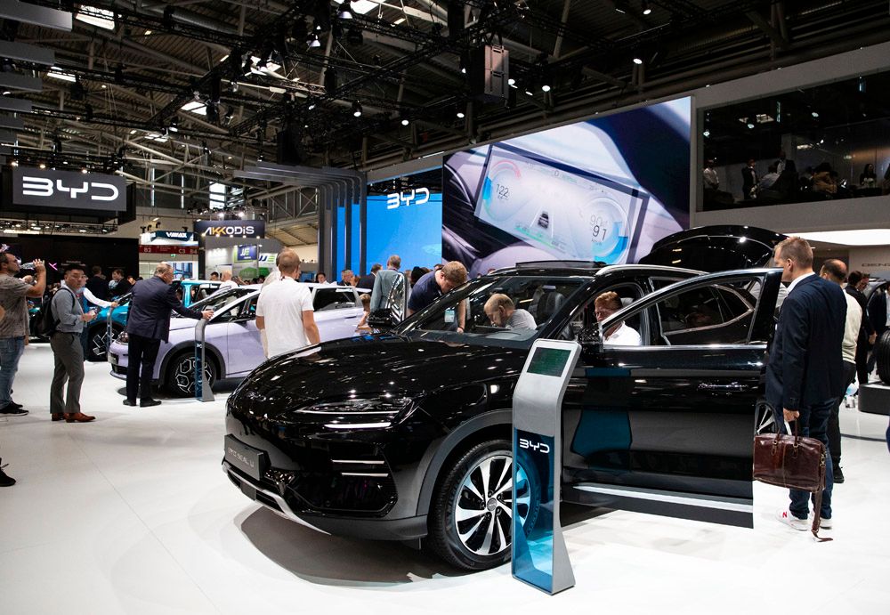 9月5日,在德国慕尼黑,参观者在德国国际汽车及智慧出行博览会的比亚迪展区参观。2023年德国国际汽车及智慧出行博览会9月5日在德国慕尼黑正式开幕。该博览会前身为每两年举办一次、被誉为世界汽车工业“奥运会”的法兰克福国际车展。(图片来源:本文图片除标注外均综编自新华社)