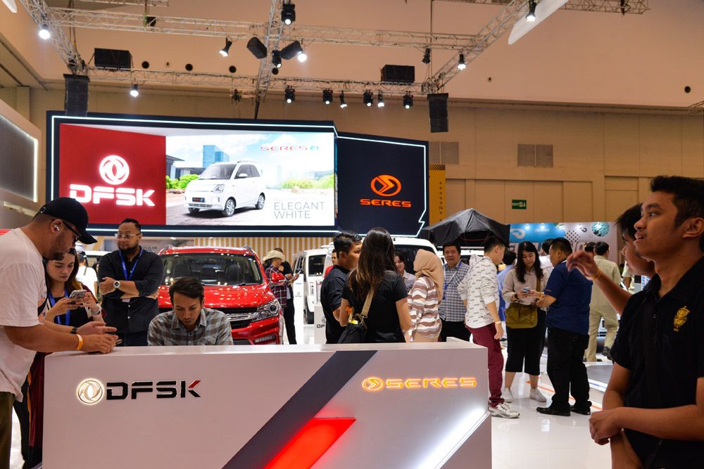 8月14日,在印度尼西亚万丹省唐格朗的印尼会展中心,参观者在2023年印尼国际汽车展上参观中国汽车品牌东风小康展台。