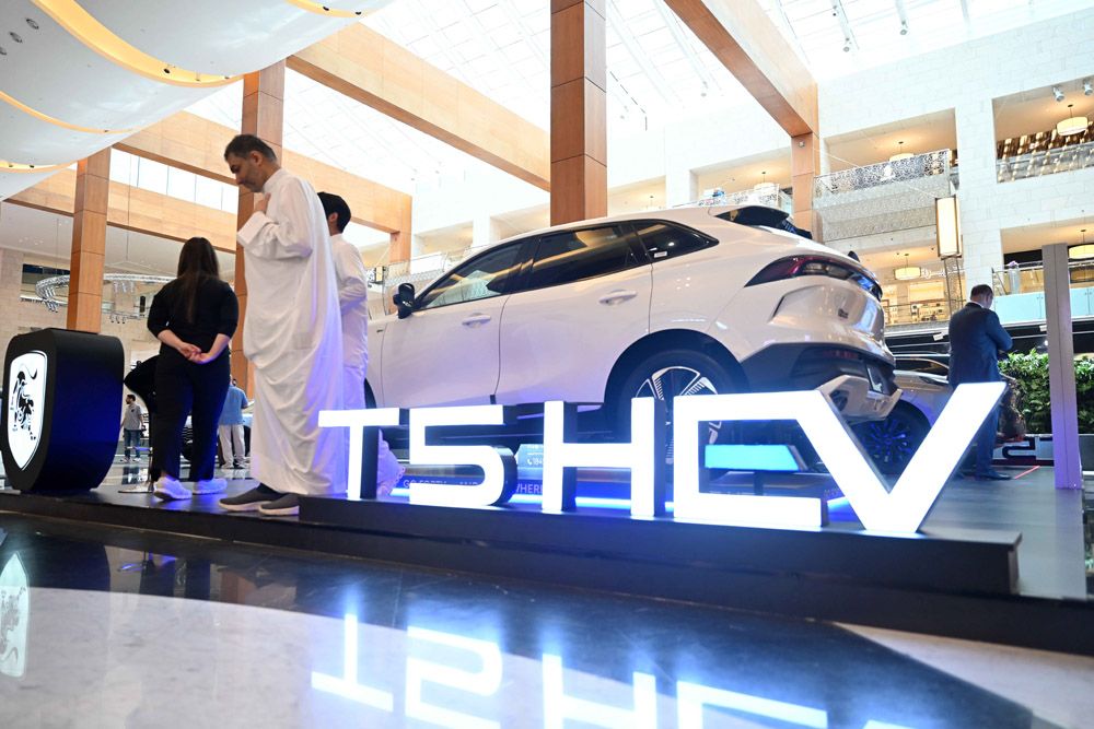 6月11日,民众在科威特哈瓦利省的中国品牌汽车专场车展上参观。
