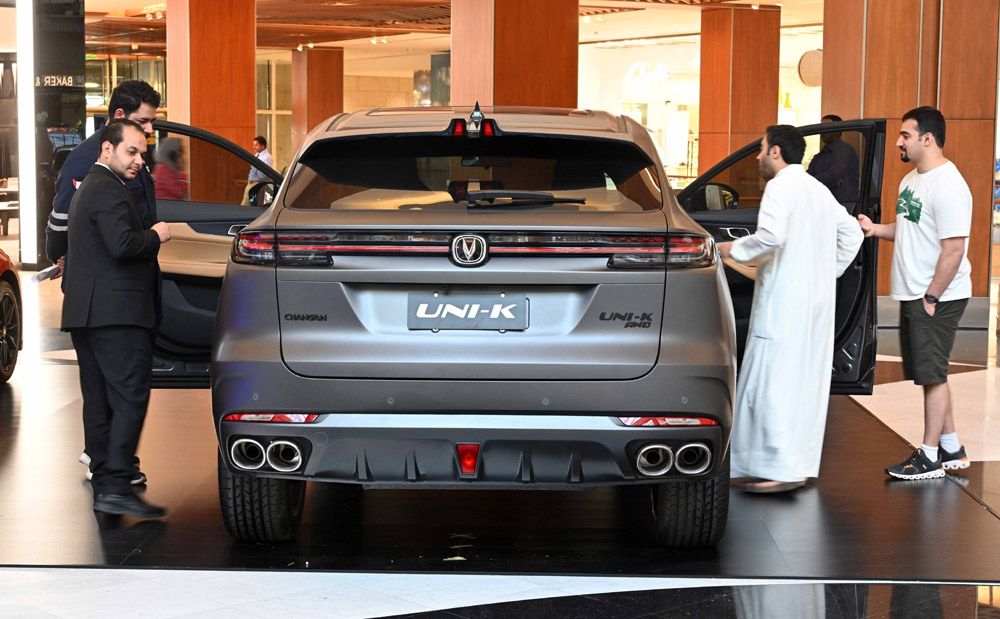 6月11日,民众在科威特哈瓦利省的中国品牌汽车专场车展上参观。当日,一场中国品牌汽车专场车展在科威特哈瓦利省的360商场内举行,展出东风、长安、奇瑞等品牌的车型。