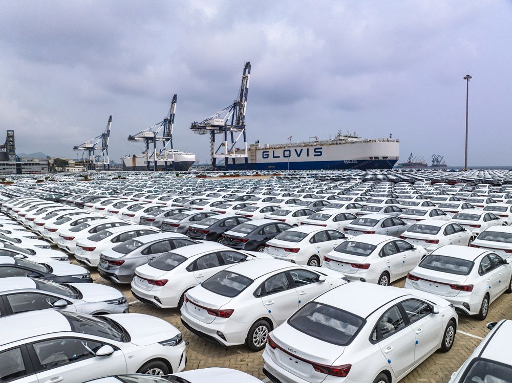 另外,中国汽车工业协会发布汽车产销数据显示,8月,中国汽车出口40.8万辆,环比增长3.9%,同比增长32.1%;1至8月,汽车出口294.1万辆,同比增长61.9%。图为9月12日,在山东港口烟台港汽车码头,大批出口商品车等待装船发运。