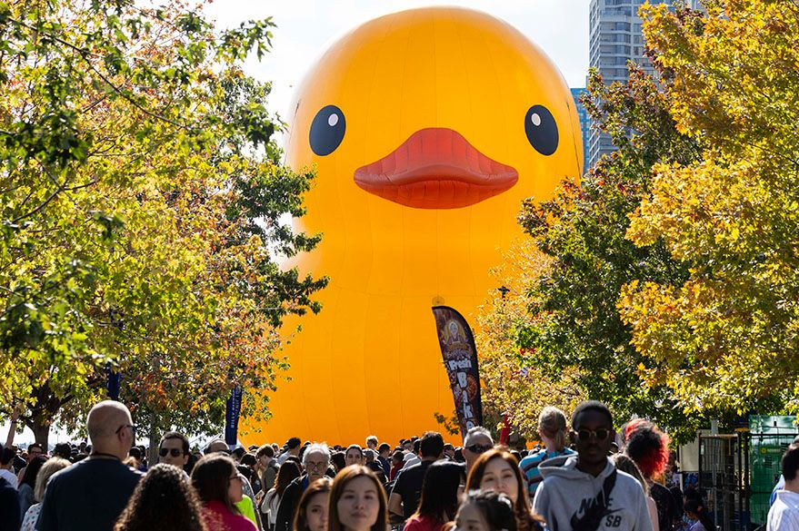 9月16日,一只6层高、重约13.6吨(30000磅)的橡皮“大黄鸭”亮相多伦多,吸引了众多游人。这是“大黄鸭”继2017年后再次来到多伦多,从9月16日至17日向公众开放。