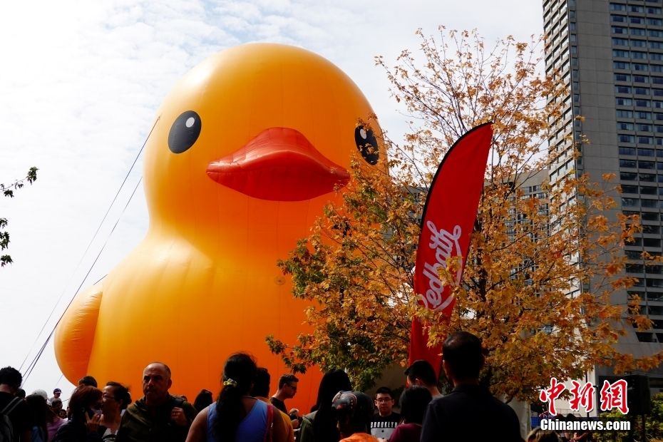 这是“大黄鸭”继2017年后再次来到多伦多,从9月16日至17日向公众开放。(图片来源:中新网)