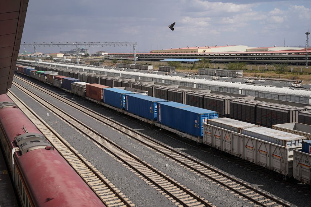 据专家估算,该项目对肯尼亚国内生产总值贡献率超过2%。图为9月20日在肯尼亚蒙内铁路内罗毕站拍摄的客运(左)和货运列车。