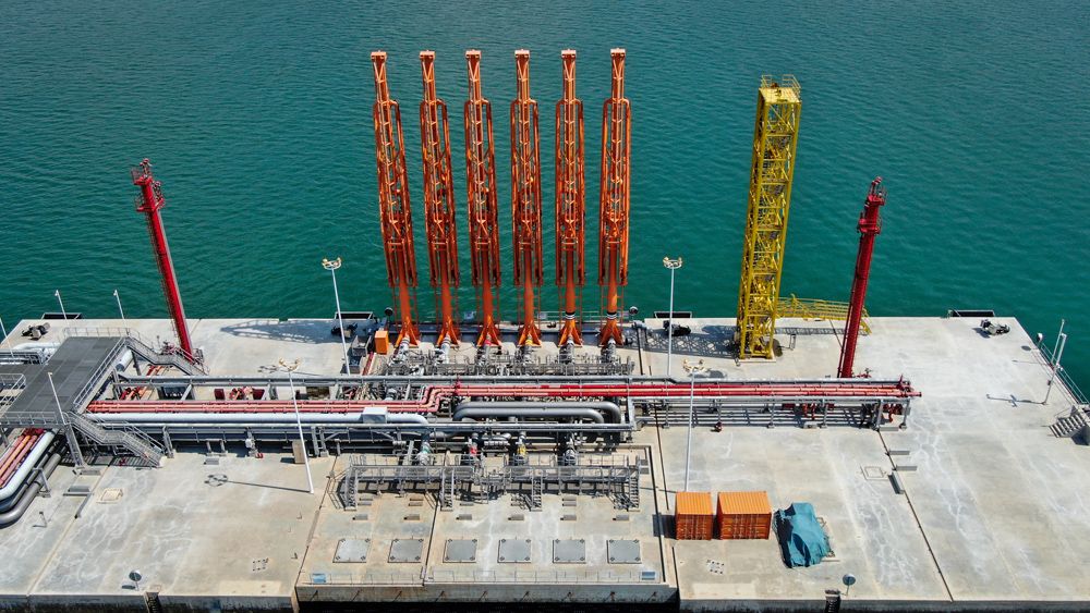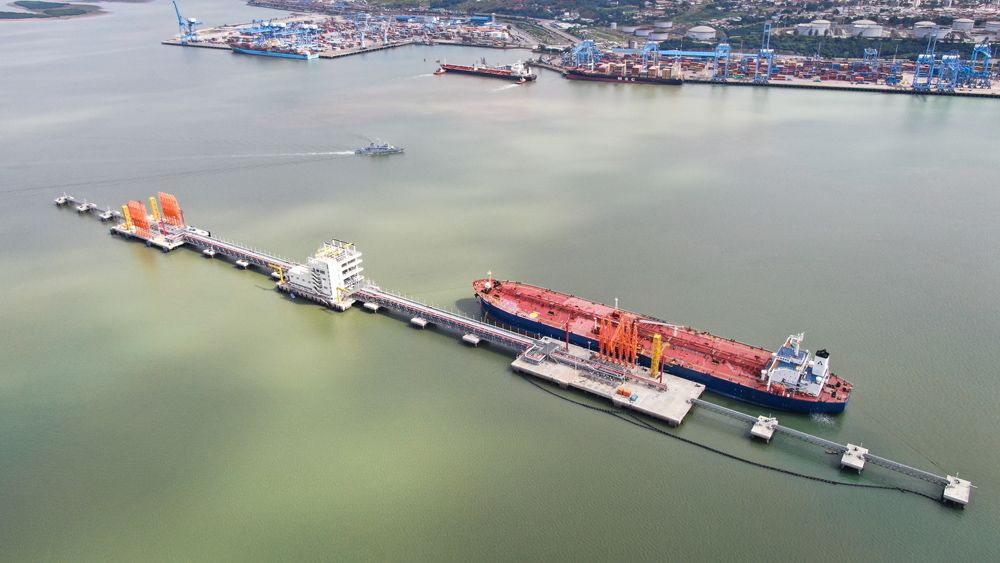 9月20日拍摄的肯尼亚蒙巴萨油码头的一处装卸平台。(图片来源:新华社发/中国交通建设股份有限公司肯尼亚蒙巴萨新建油码头项目部供图)