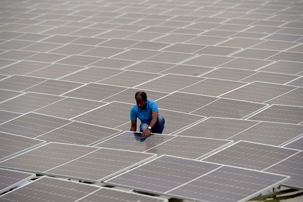 孟加拉国首个水上漂浮太阳能光伏发电站今年成功接入国家电网,该电站位于该国西部的查帕伊诺瓦布甘杰地区。图为在孟加拉国查帕伊诺瓦布甘杰,工作人员检查水上漂浮太阳能光伏发电站运行情况。