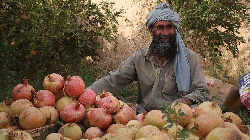 农民在阿富汗法拉省的一处果园整理收获的石榴。(图片来源:新华社)