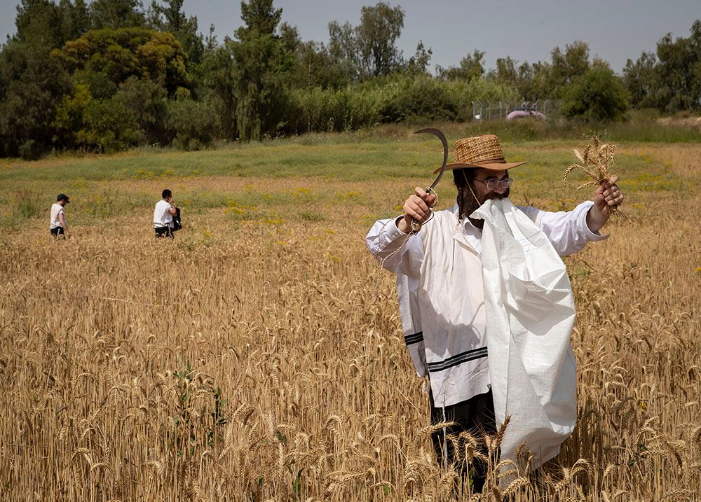 犹太教徒在以色列莱特龙郊外一处麦田收获小麦。(图片来源:新华社)