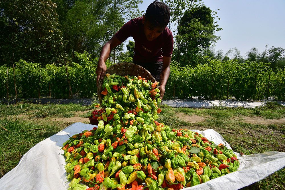 印度阿萨姆邦:“魔鬼辣椒”丰收。(图片来源:新华社)