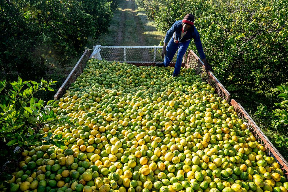 南非是世界主要柑橘出口国之一,每年2月至9月是南非柑橘的收获季。(图片来源:新华社)