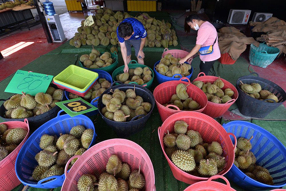 泰国:收获榴莲。(图片来源:新华社)