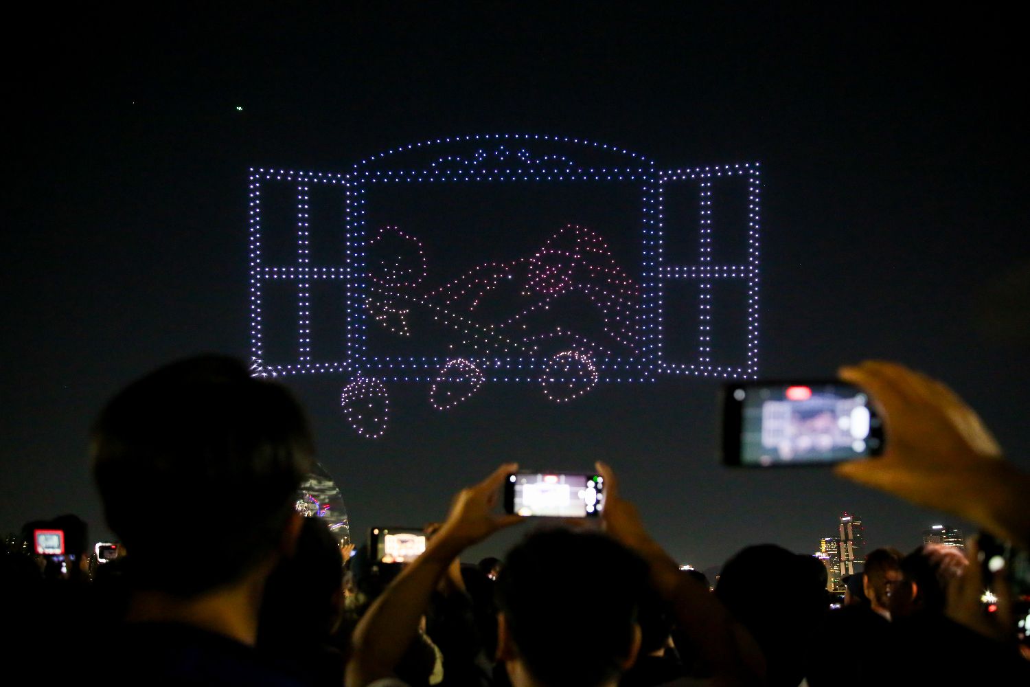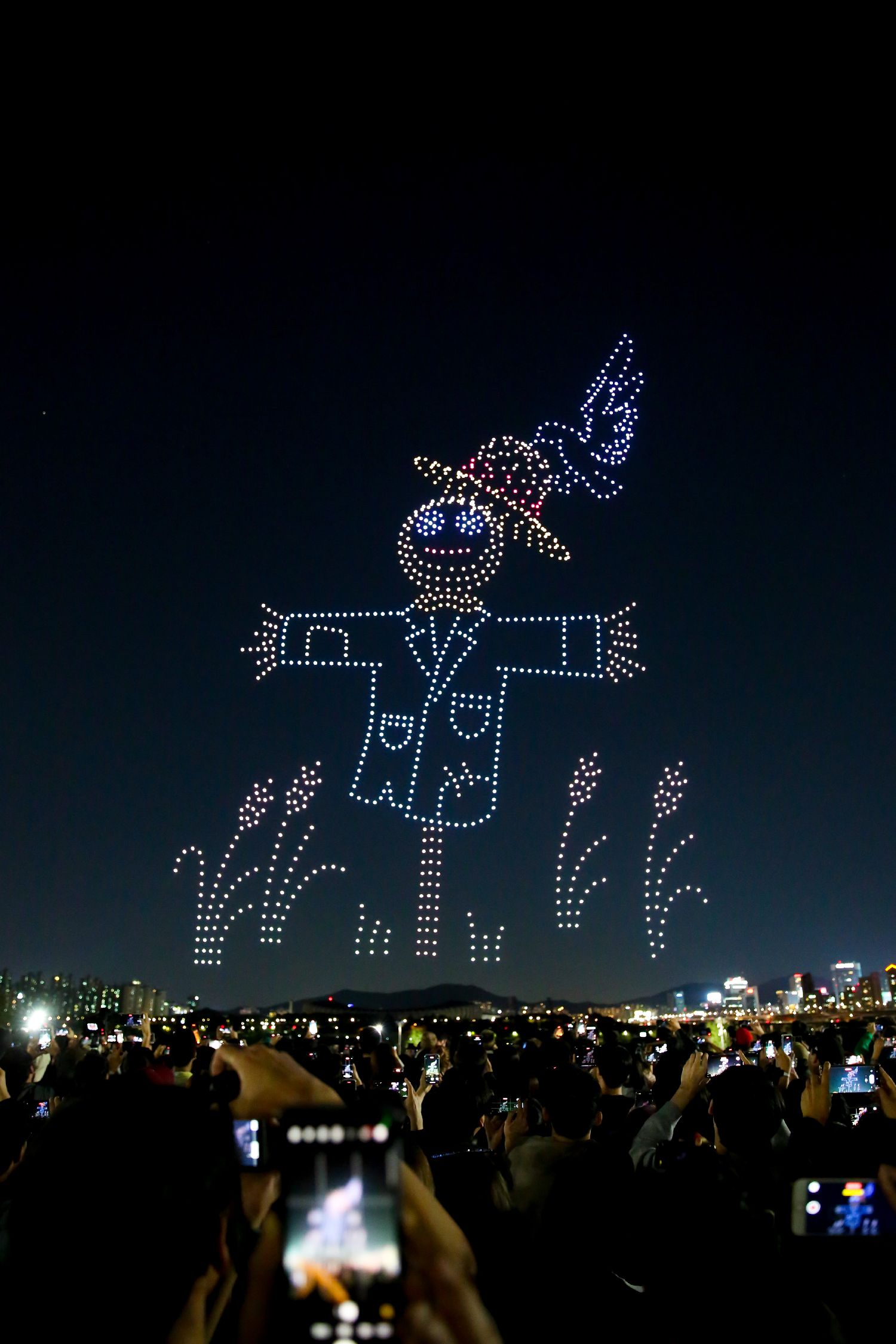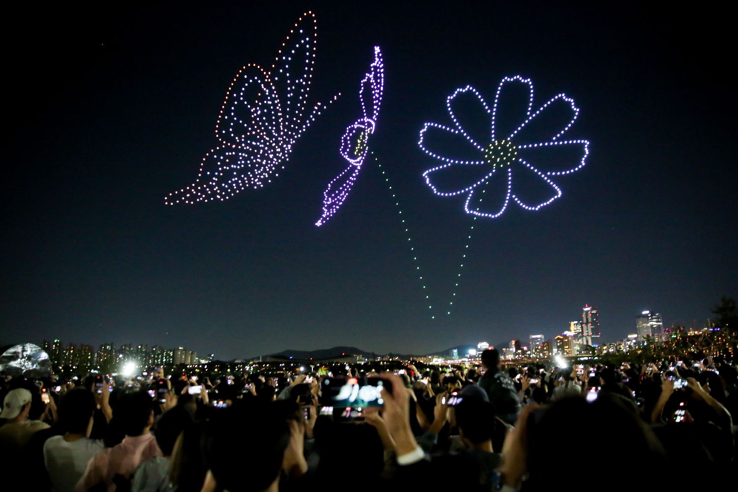 趣味无穷 无人机灯光秀点亮首尔夜空