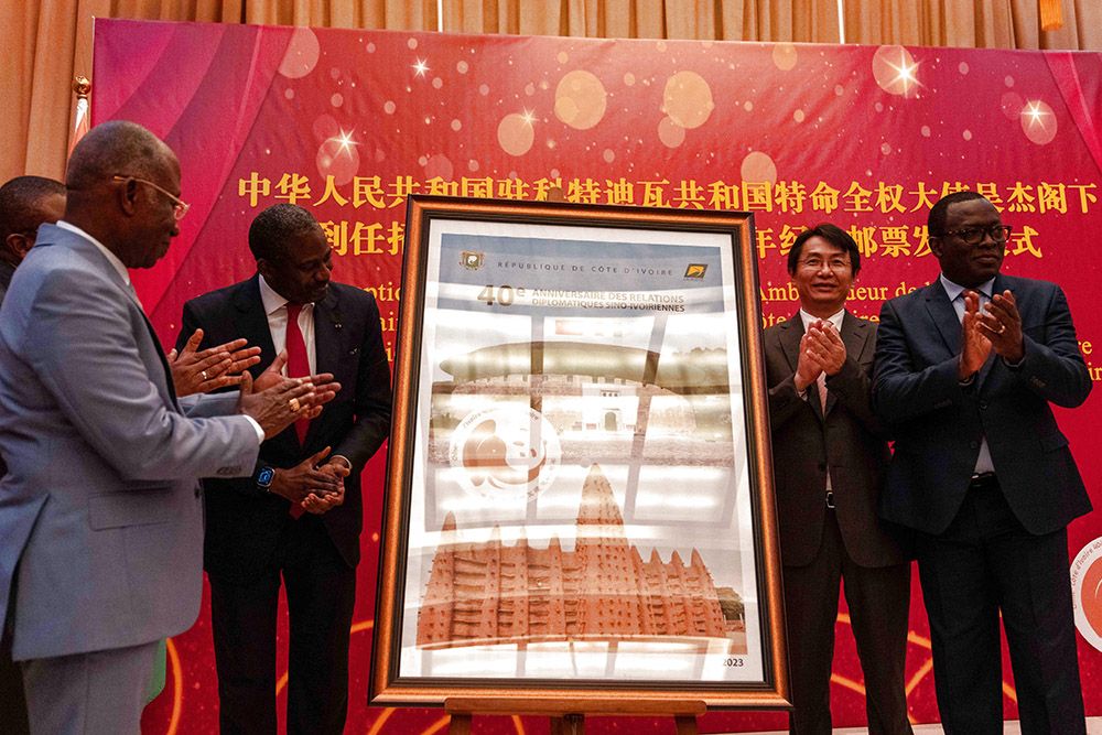 科特迪瓦发行中科建交40周年纪念邮票。(图片来源:新华社)