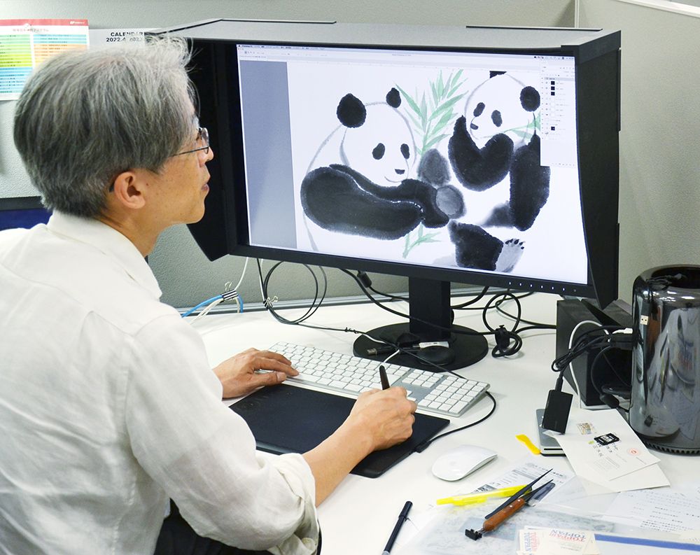 在日本东京,“日中邦交正常化50周年”纪念邮票设计者、日本邮政公司邮票和明信片室负责人玉木明在工作间内工作。(图片来源:新华社)