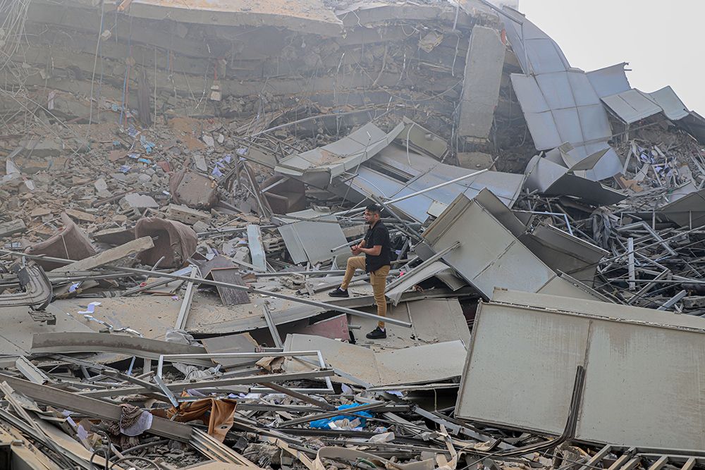 以军将哈马斯武装人员曾躲藏的警察局办公楼拆除。(图片来源:新华社)