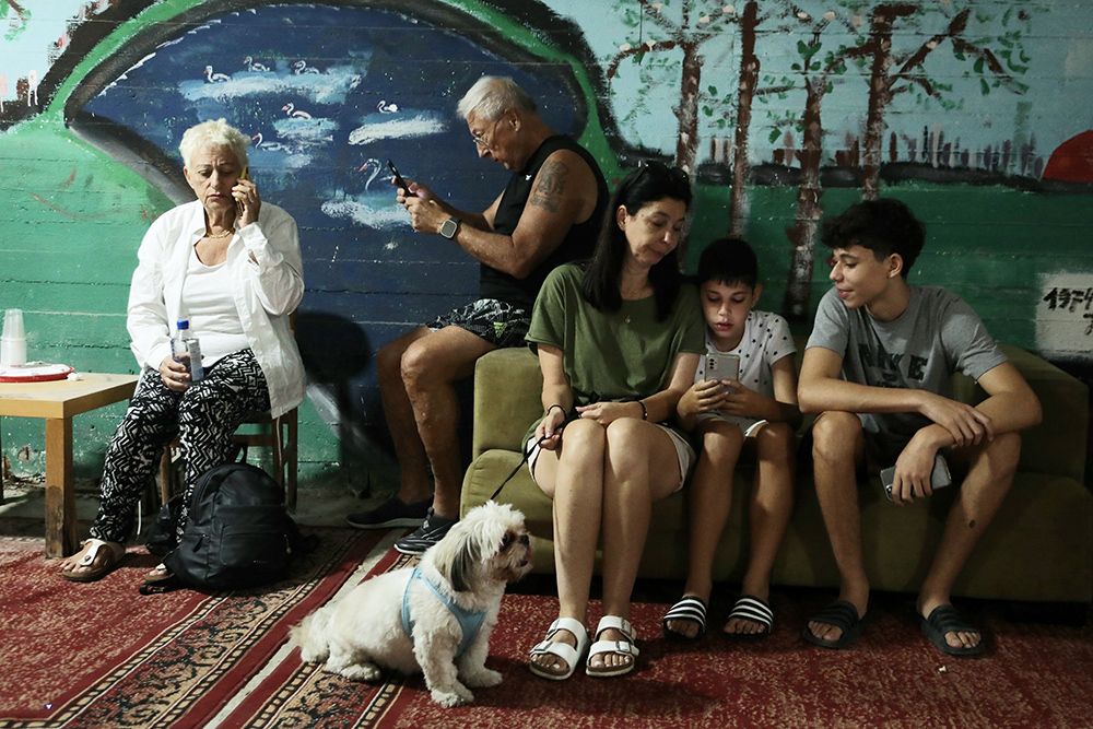 防空警报响起后民众在以色列特拉维夫一处建筑内躲避。(图片来源:新华社)