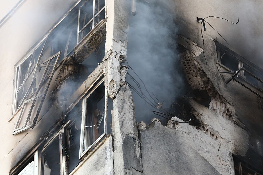 一栋遭火箭弹袭击的建筑。(图片来源:新华社)