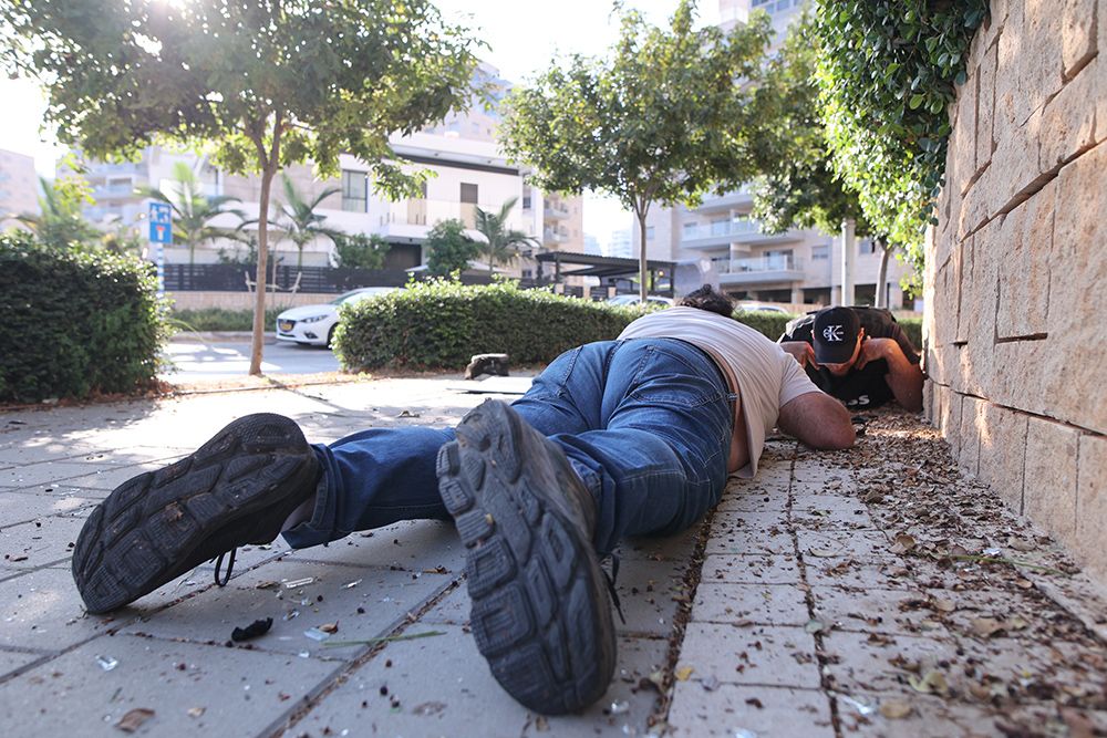 民众匍匐在地躲避火箭弹袭击伤害。(图片来源:新华社)