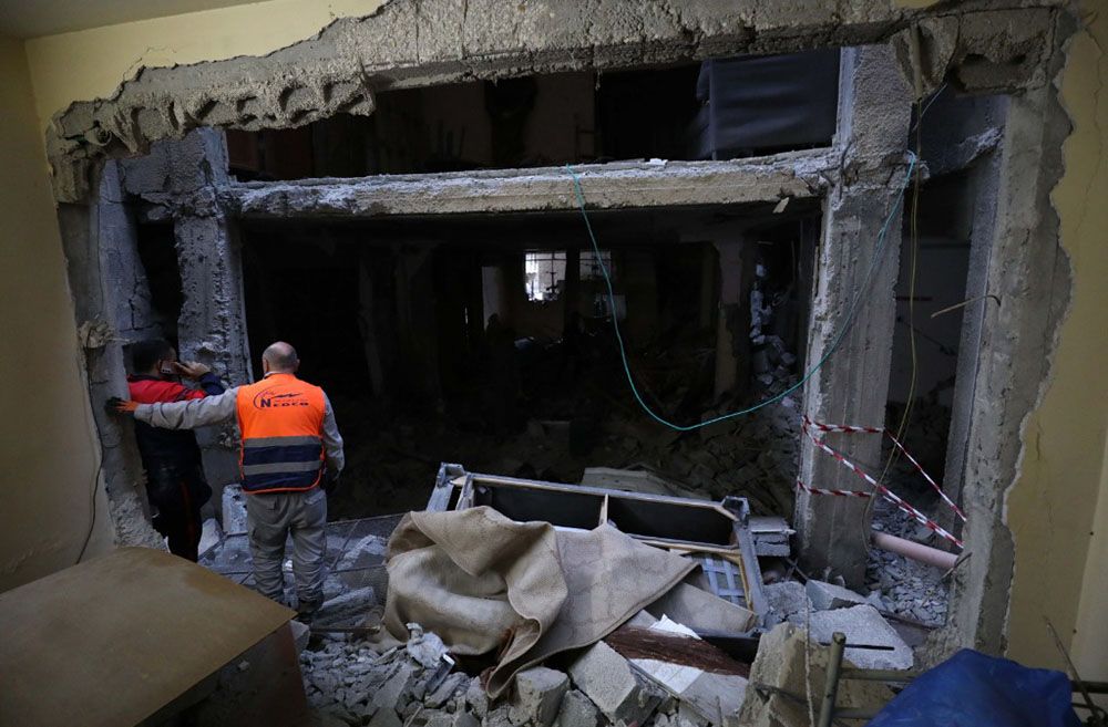 巴勒斯坦人查看以色列空袭后的建筑废墟。(图片来源:新华社)